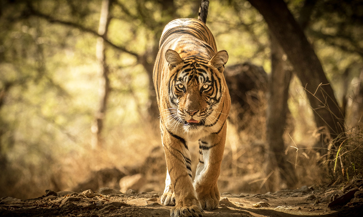 Die Atmosphäre ändert sich vollständig, wenn sich ein bengalischer Tiger in der Nähe befindet. Man kann Geräusche von Tierwarnungen hören, die die Luft erfüllen, wenn das majestätische Tier in ihr Territorium eintritt.