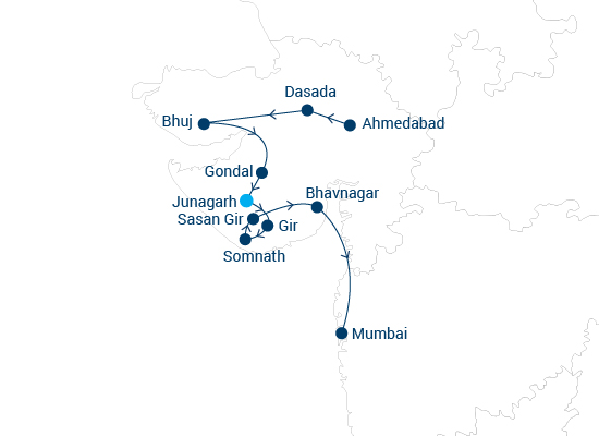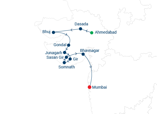 Treten Sie abseits der Touristenpfade und hinter die geschäftigen Metro-Städte, die Forts und Paläste, entdecken Sie die einzigartigen Schätze von Gujarat. Oft übersehen, ist dieser Staat mit seinem einzigartigen Erbe und seiner Naturgeschichte einen Besuch wert und eine wahre Fundgrube an Erlebnissen. Auf dieser Tour versuchen wir, einige dieser unglaublichen Schätze zu enthüllen und Sie von der großartigen indo-islamischen Architektur und den geschäftigen Basaren von Ahmedabad zu den weißen Wüsten-Salz-Schmerzen des Kutch zu bringen, Heimat des seltenen wilden Esels und des Sasan Gir Waldes- letzter verbleibender Lebensraum der Asiatischen Löwen. Besuchen Sie auch den Sonnentempel aus dem 11. Jahrhundert in Modhera und die beeindruckenden Marmorschreine auf dem hohen Shatrunjaya-Hügel. Entdecken Sie zwischen den Touren eine ganz andere Art von Küche, treffen Sie einige der freundlichsten Einheimischen und genießen Sie das farbenfrohe und entzückende Rann of Kutch Festival.