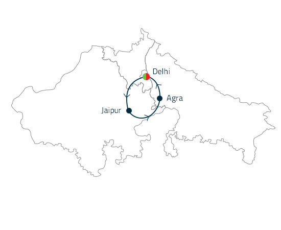 Das Goldene Dreieck hat den Namen aufgrund der rechteckigen Form der drei Destinationen - Delhi, Agra und Jaipur - auf einer Karte.
