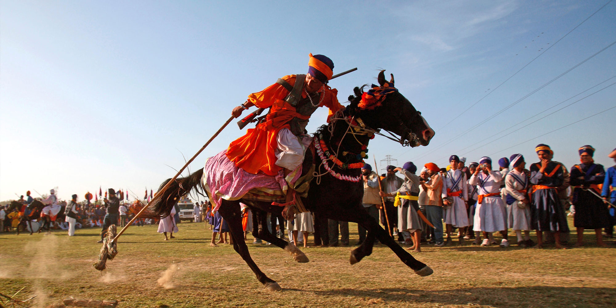 Schließen Sie sich den freundlichen, fröhlichen Gesichtern an, während diese in einen spontanen Tanz im Takt von Dhols (Trommeln) einbrechen. Lassen Sie sich von den Farben leuchtender neuer Kleider verführen, die Kinder, Frauen und Männer schmücken. Lassen Sie sich von lauten Lautsprechern anlocken, welche Aufmerksamkeit erregen, um die Einladung zum Langar (kostenloses Gemeinschaftsessen auszusprechen - Willkommen bei Holla Mohalla!