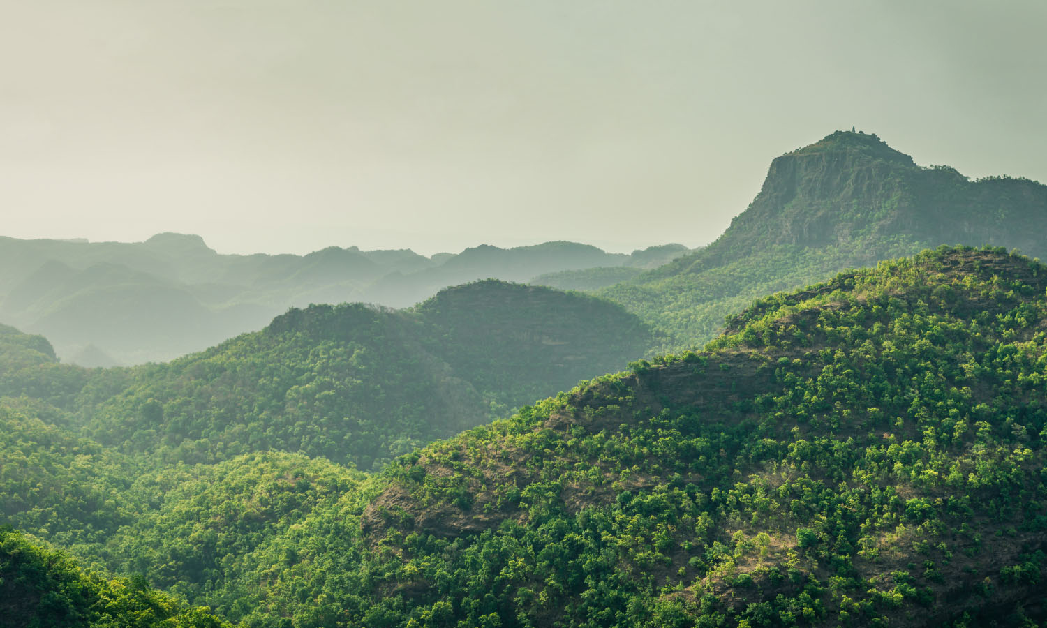 Pachmarhi (3555 ft), the only hill station located in Madhya Pradesh, enjoys pleasant weather throughout the year, but is an especially lovely sight to behold during the monsoon season. The aeons-old hills of the Satpura range seem like dozing dinosaurs silhouetted against the dark rain-bearing clouds. Its lush and dense forests of Sal, teak and Sagwan hold in its belly, numerous ancient secrets of early man’s beginnings, amply depicted in the prehistoric cave paintings and rock shelters that litter the terrain, besides innumerable small and big temples dedicated to lord Shiva. Besides this, this picturesque hill station is also dotted with thick mango and jamun groves and grassy meadows, with silvery cascades that swell into frothy cataracts, and the entire landscape dons a verdant glow when awash with rain. One can watch with fascinating delight, as raindrops bathe the robust and bold red and orange Silk Cotton and Flame of the Forest blossoms contrasting with the shy mauve of fragrant Jacarandas and the intoxicating whiteness of the notorious Mahua flower.