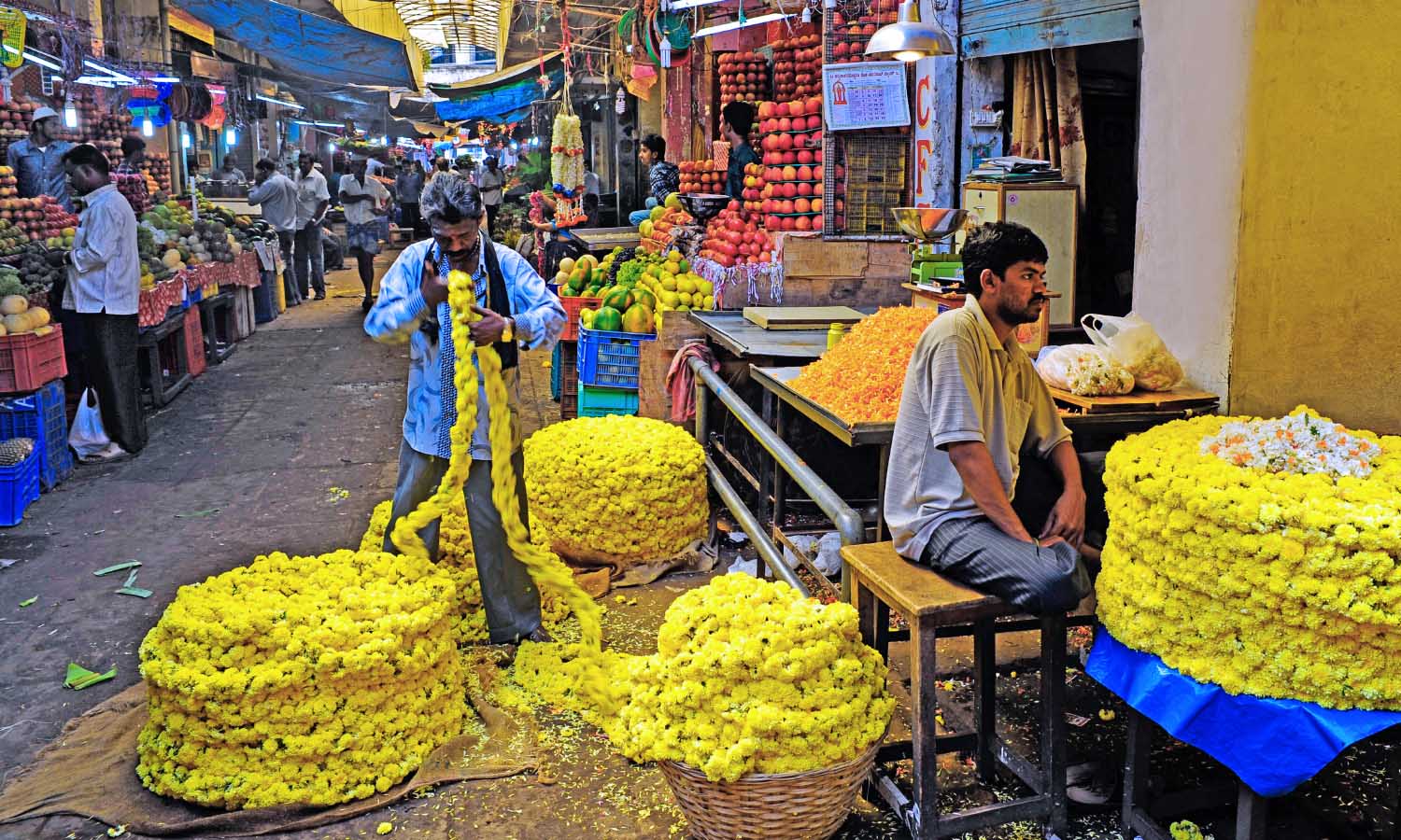 Nas ruas você encontra vendedores de frutas, vegetais, pulseiras, guirlandas de flores, especiarias e pilhas cônicas de kumkum (pó colorido usado para o bindi), incenso, utensílios domésticos e tudo mais. Perceba a doce mistura de cores e aromas de flores, frutas e incenso de sândalo. Os sáris brilhantes e as pulseiras multicoloridas das mulheres são um bom tema para se fazer belas fotos. Ao fazer compras, não se esqueça que negociar o preço faz parte da experiência.