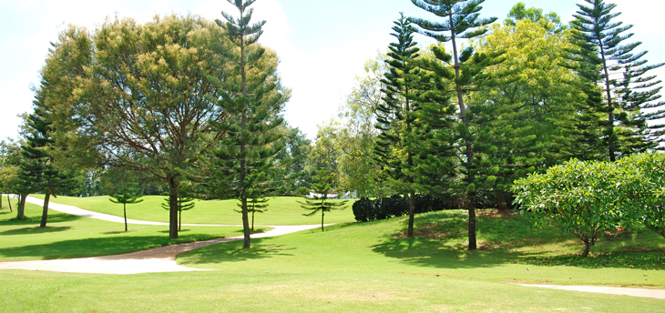 O campo Par-72 de 6.500 metros foi construído sobre arrozais. Isso o torna relativamente ondulado, e as inúmeras árvores e arbustos que revestem os fairways permitem pouca ou nenhuma margem de erro. No entanto, o maior desafio do campo está em seus obstáculos de água naturais e artificiais, que permitem jogadas com pequena margem de erro. Além disso, os campos Par-4s são longos e complexos e os greens amplos e ondulados; jogar pelo seguro pode afetar drasticamente a pontuação.