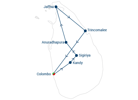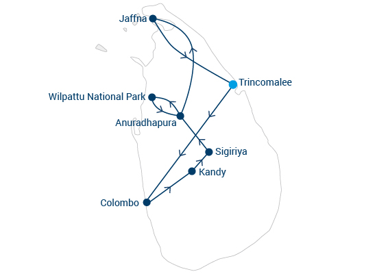 Este viaje fascinante no solo le lleva a alguno de los puntos turísticos más clásicos de SriLanka, también le da la oportunidad de explorar el norte del país, ahora que La Paz ha regresado. Aunque el alojamiento es básico, los esfuerzos de reconstrucción continúan y es solo cuestión de tiempo que esta zona comience a atraer a multitud de turistas. Pero por ahora, se encuentra casi sin descubrir y sin tocar. Los visitantes de hoy pueden ver los restos de la guerra intercalados con paisajes coloridos y exquisitos, probar la cocina increíble y quedar encantado por los simpáticos lugareños. Visite también lugares de interés como Sigiriya Rock y la antigua capital Anuradhapura, pase tiempo en la ciudad a más grande de Sri Lanka, Colombo y relájese en las playas.