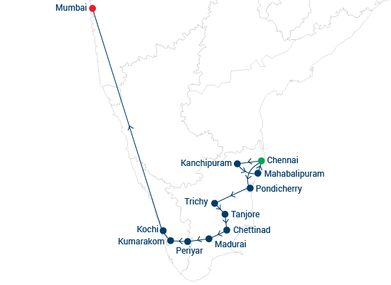 Realice un viaje espléndido a través de los paisajes verdes del sur de la India, explorándola las extraordinarias ciudades, templos, pueblos de cultivo de especias y ciudades costeras tropicales. A medida que viajas desenrede y descubra la cultura de esta región, llegando a probar la cocina increíble de la región para darse cuenta de que el sur de la India es literalmente otro mundo, pero como siempre lo ha imaginado, colorido, exótico, místico e incluso un poco mágico. Prepárese Iara embarcarte en el que será uno de los viajes de su vida.